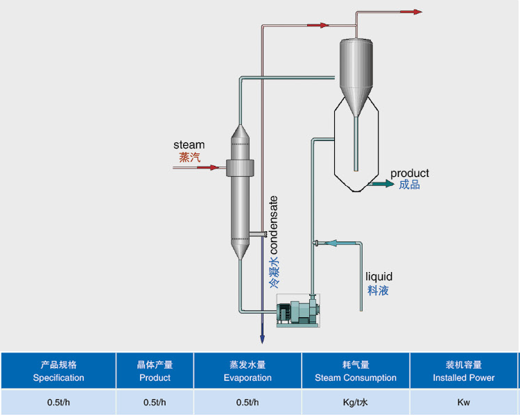 适用于容易产生积垢和结晶的液体的浓缩;不易堵塞,因此特别适用于含悬浮物和高粘度、高浓度流体的蒸发。