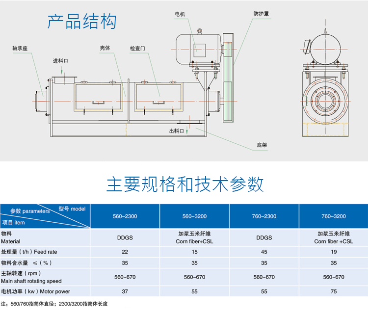 用于淀粉、酒精、饲料行业中粒状干湿物料的混合或再加浓浆搅拌混合。